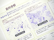 自分の肌細胞がカラープリントで分析されています。自分の肌細胞、はじめて見ましたよ(笑 自分の肌の長所と弱点が一目で分かり、それに対する改善アドバイスが書かれています。